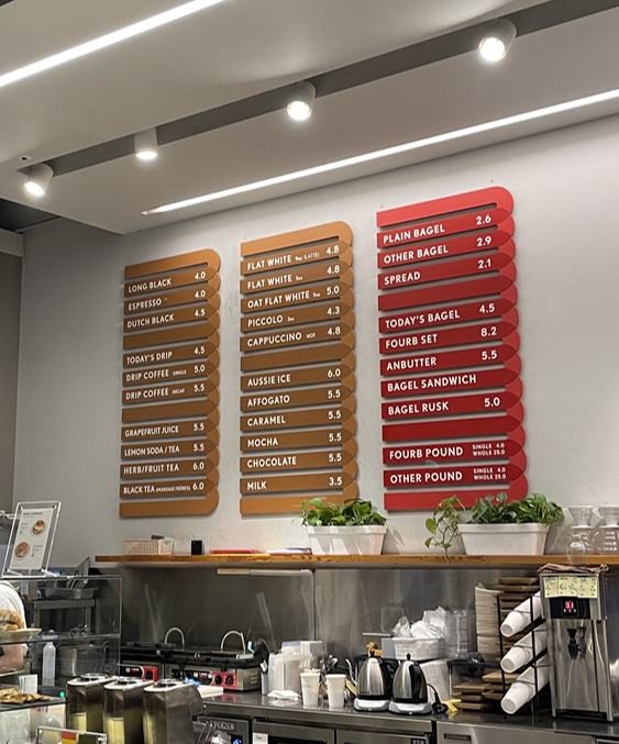 요즘 커피들이 비싸서 그런가 상대적으로 저렴한 가격이라는 생각이 들었다. 근데 지금 생각해보니 그렇게 저렴한 가격도 아닌것 같다. 하하.. 베이글과 스프레드도 엄청 유명하다고 하는데 이 날은 배가 너무 불러서 음료만 간신히 먹고왔다. 아쉬워라. 매장마다 베이글을 직접 굽고 스프레드도 만든다고 한다.