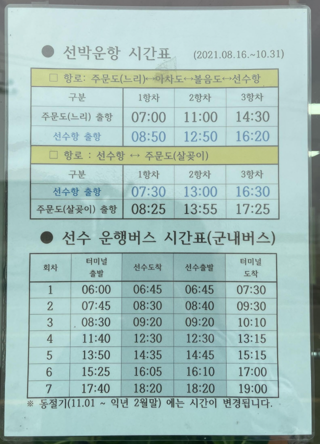 선수항 출항 8:50분을 첫배로 12:50 16:20 이렇게 3번 운항되고