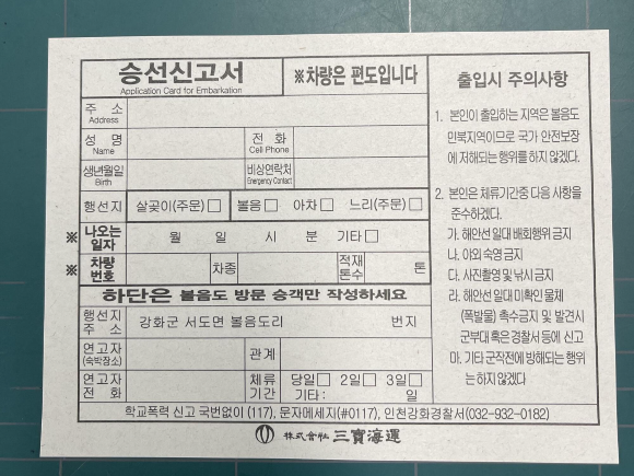 우리를 볼음도에 데려다 줄 배에 승선하였스비다!!!!!!