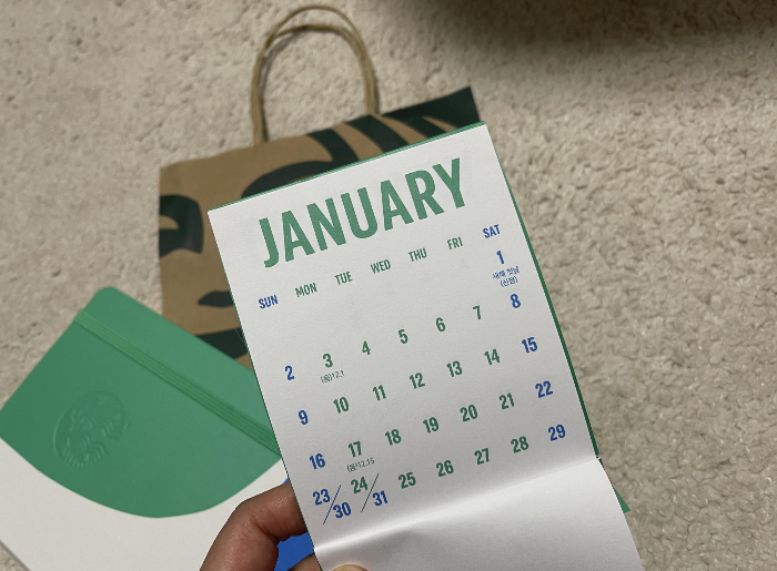 뒤쪽에는 재그마한 캘린더가 들어있다.
