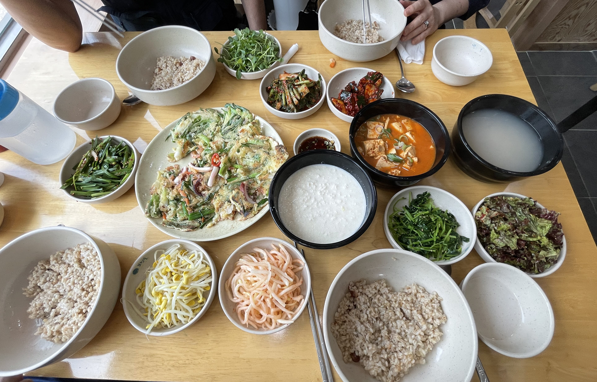 보리밥이 나오고 여러 나물들과 김치 오이무침이 서빙되어진다. 고추장+참기름을 넣어서 먹을 때도 있지만 청국장을 같이 넣어서 비벼먹는맛이 일품이다. 비지는 간간하게 간이 되어져서 나오는데 고소하고 안질리는 맛이여서 계속 손이 간다. 숭늉도 한꺼번에 서빙이 되어진다. 파전은 생각보다 커서 4명이서 (성인여자2,남자2) 보리밥4 + 파전은 항상 양이 좀 많게 느껴지긴 했다. 하지만 파전을 안먹을 수가 있냐 이말이다!!! 그래서 항상 헉헉거리면서 파전까지 시켜먹고 나오게 되는 것 같다.